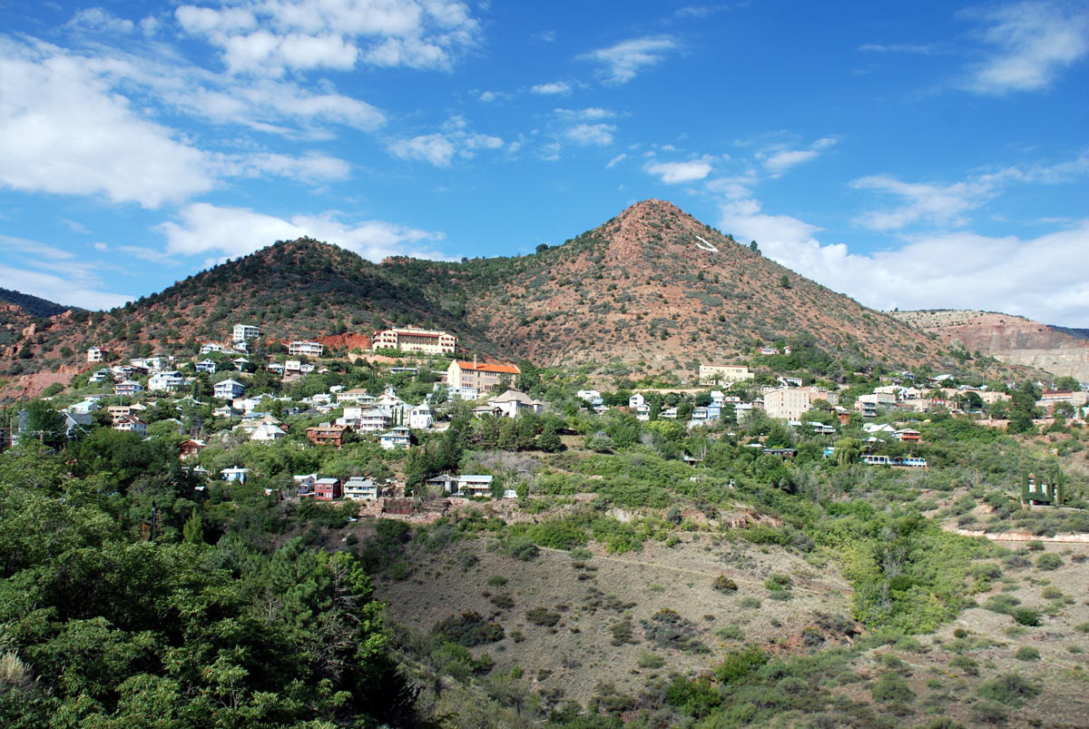 On the eastern slope of Cleopatra Hill, at an elevation of 5,200 feet is the mining town of Jerome with its sloped rooftops; winding streets; and reminders of its heyday as a mining town. It’s no wonder the city is designated a historic landmark; it is certainly a must-see for any lover of frontier and/or mining history — just minutes from Cottonwood and Clarkdale, Arizona. Since Jerome sits at a mile high in elevation, the average daytime temperatures are lower than the rest of the towns in the Verde Valley. Average daily highs are in the 50’s during the winter and low 90s in the heat of the summer.
